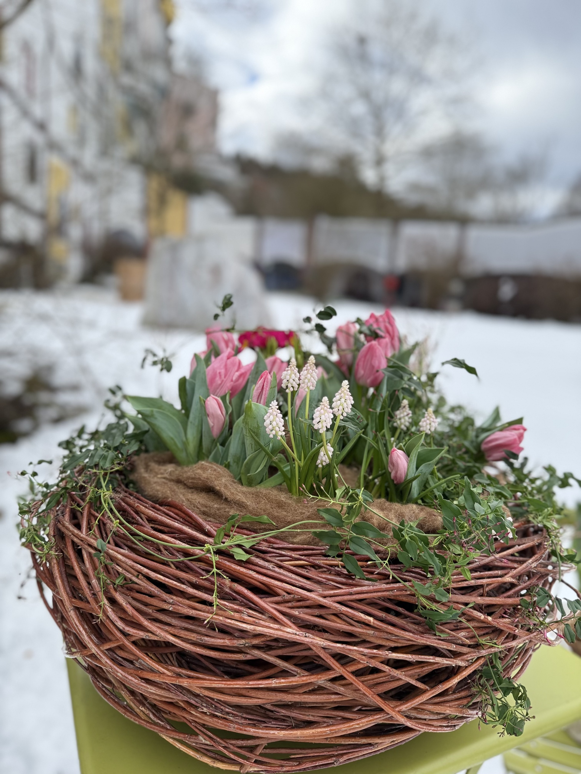 Saisonale Grabgestaltung zur Frühlingszeit